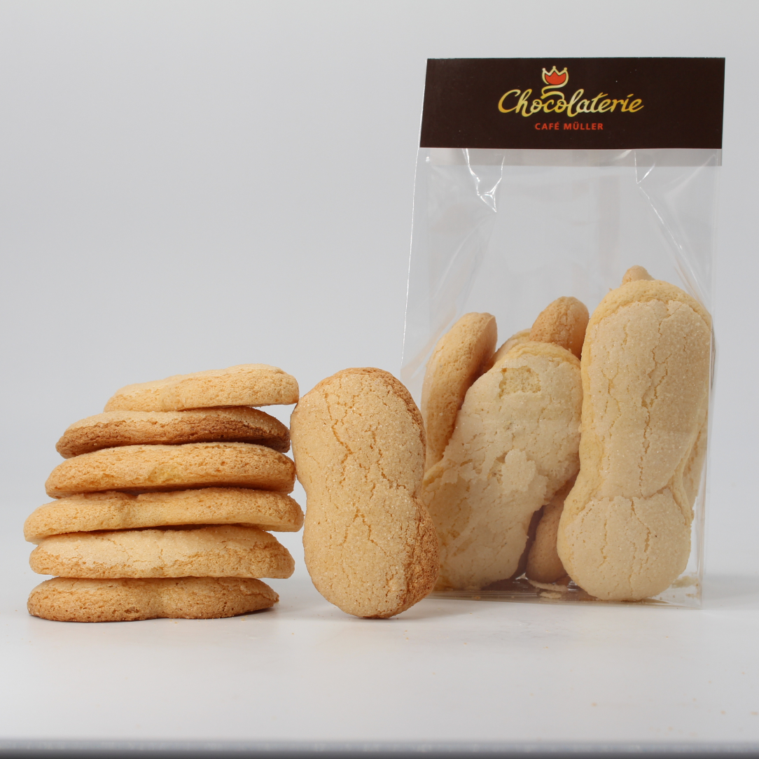 Unsere Löffelbisquits sind umhüllt von einer feinen Zuckerkruste. Sie sind außen leicht knusprig, innen weich und luftig.