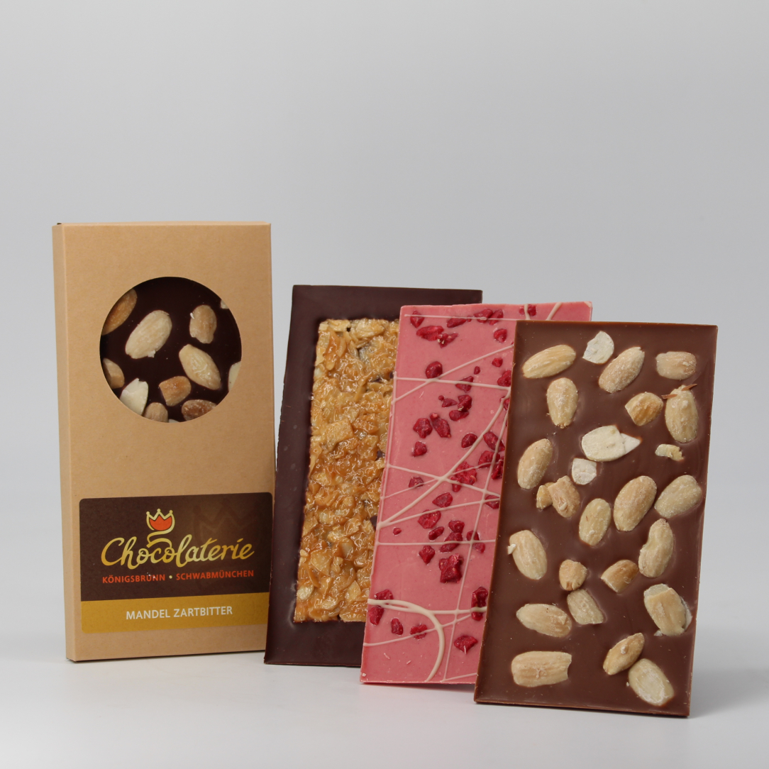 Unsere Tafelschokoladen entstehen in handwerklicher Herstellung aus ausgewählten Kakaosorten. Jede Sorte überzeugt durch ihren eigenen Charakter – von zartbitter und kräftig bis cremig und mild.