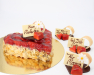 Zutaten: Mürbteigboden, Marmelade Johannisbeer und Himbeer, Wienerboden hell und dunkel, Pudding ( Maisstärke, EIER; MILCH, Vanille, Zucker), Erdbeeren, Geleeguss (Zucker, modifizierte Stärke, Verdickungsmittel, Carageen, Johannisbrotkernmehl, Trinatriumcitrat)