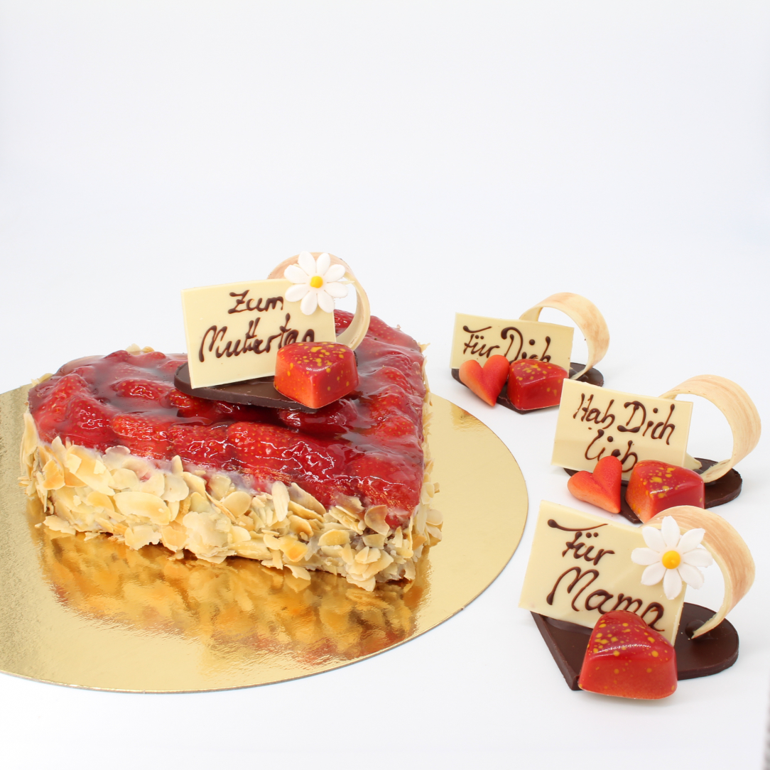 Ein süßes Dankeschön von Herzen: Unser Erdbeer-Herzkuchen (ca. 20x20cm / 4 Stück) vereint lockeren Biskuit, feine Creme und saftige, sonnengereifte Erdbeeren zu einem echten Muttertags-Highlight. Frisch belegt, fruchtig-glänzend und mit zart gerösteten Mandeln am Rand veredelt.